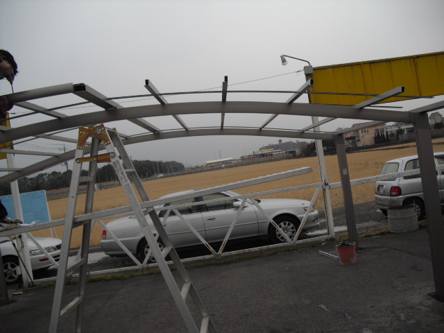 まだ4本の支柱を立てただけです。