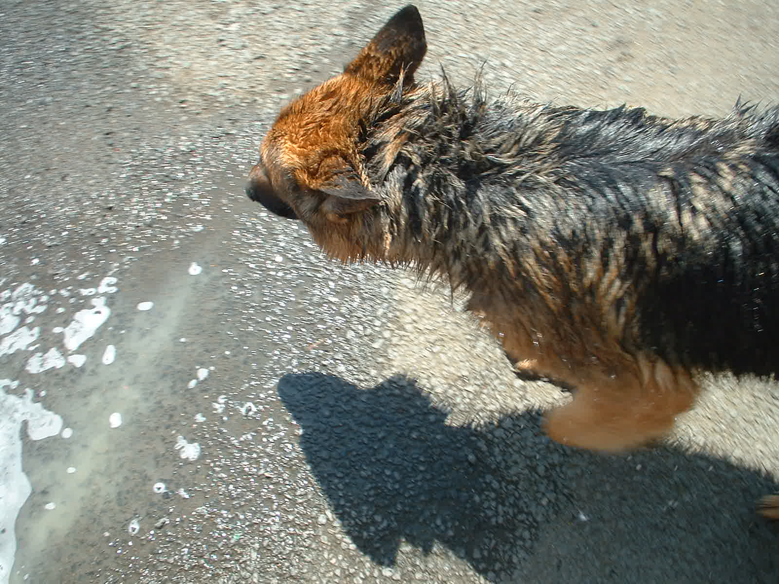ジョン君は水がだいっ~嫌いです。ホースでハウスを洗うときはすぐに逃げます。