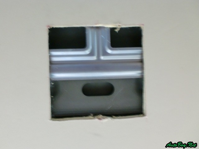 このT字をセンターと考え、本格的にカットします。本格的といっても、ステーの位置をきっちり決めれば、穴は本体で隠れてしますので、ここもある程度いい加減です。